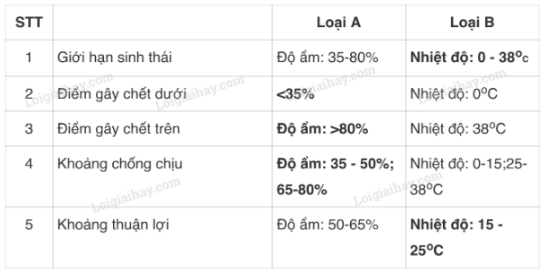 Bảng 41.3. Giới hạn sinh thái của một số loại sinh vật