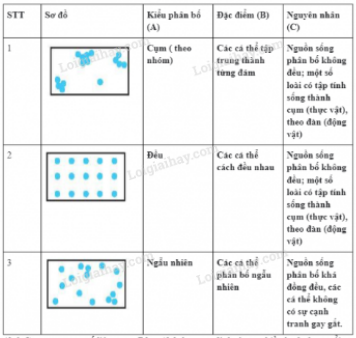 Bảng 42.1. Sơ đồ các kiểu phân bố cá thể trong quần thể