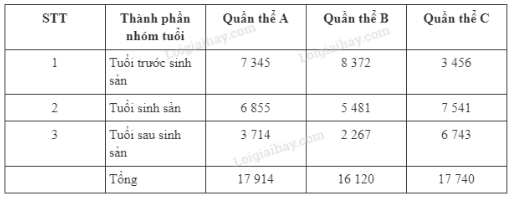 Bảng 42.2. Số lượng cá thể trong các nhóm tuổi của ba quần thể côn trùng