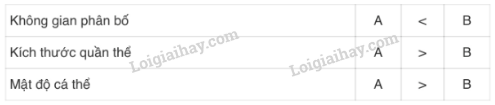 Hai quần thể chuột (A và B) sống ở hai ruộng lúa có diện tích khác nhau (Hình 42.1). Hãy so sánh một số đặc trưng giữa quần thể A và B bằng cách xác định dấu “<" hoặc ">“thay cho các chữ số (1), (2), (3) trong bảng sau: