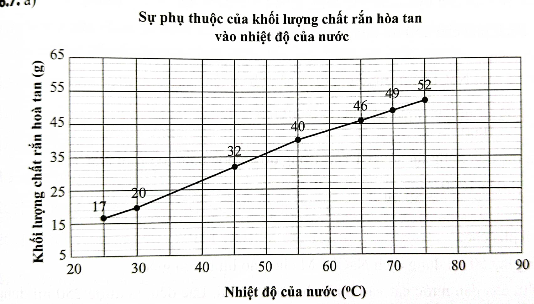Để kiểm tra độ tan của một chất rắn chưa biết, một nhóm học sinh cho chất rắn đó vào 200ml nước. Kết quả cho thấy độ tan của chất rắn thay đổi ở nhiệt độ khác nhau của nước. Cụ thể như sau: