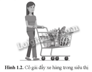 Trong siêu thị, cô gái đẩy xe hàng với một lực F = 50 N theo phương nằm ngang trên quãng đường dài s = 15 m (hình 1.2).