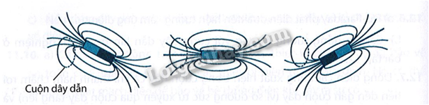 c) Nam châm quay đều quanh một trục chéo với cuộn dây. Trong trường hợp này, số đường sức từ xuyên qua tiết diện của cuộn dây liên tục biến thiên tuần hoàn (lúc tăng, lúc giảm). Chính sự biến thiên tuần hoàn của từ thông này đã tạo ra dòng điện cảm ứng xoay chiều trong cuộn dây.