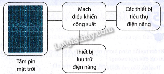 a) Vào ban ngày, các tấm pin mặt trời hấp thụ năng lượng ánh sáng mặt trời và biến đổi thành điện năng. Dòng điện sinh ra được mạch điều khiển công suất điều chỉnh lưu lượng cấp cho các thiết bị điện trong nhà và đồng thời nạp cho thiết bị lưu trữ điện năng. Khi cường độ ánh sáng mặt trời giảm hoặc vào tinh ban đêm, thiết bị lưu trữ điện năng sẽ cấp điện cho các thiết bị điện trong nhà.