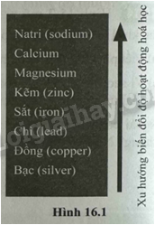 Hình 16.1 cho biết xu hướng biến đổi mức độ hoạt động hóa học của một số kim loại.
