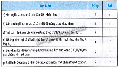 a) Kim loại có các tính chất vật lý nào?