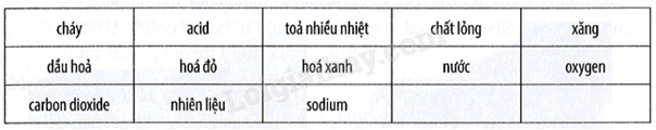 c) Acetic acid có tính (7) ... nên làm quỳ tím (8) ...; ethylic alcohol dễ cháy và khi cháy (9) ... nên ethylic alcohol được dùng làm (10) ... còn acetic acid không có đặc điểm này.