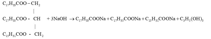 1 mol triester + NaOH tạo ra 2 mol C17H35COONa + 1 mol C17H33COONa.