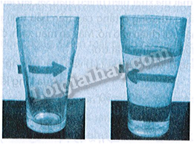 – Mũi tên bị đảo chiều so với trước khi đổ nước vào cốc.