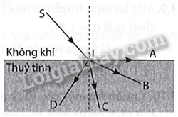 Một tia sáng đi từ điểm S trong không khí tới điểm I tại mặt phân cách thuỷ tinh – không khí như hình bên. Sau khi rời mặt phân cách này, tia sáng tiếp tục đi theo đường nào?