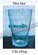 – Đặt tờ giấy có hai nửa hình tròn tô màu khác nhau phía sau cốc thuỷ tinh và cách cốc khoảng 10 cm.