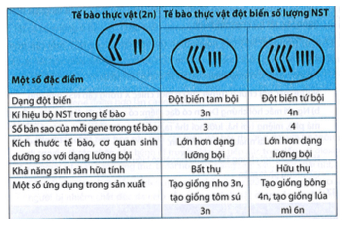 + Đột biến đa bội: đa bội lẻ: 3n, 5n,.., đa bội chẵn: 4n, 6n,..., dị đa bội: mang bộ NST lưỡng bội của 2 loài khác nhau.