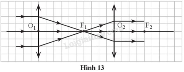 Chiếu một chùm ba tia laser song song tới một thấu kính hội tụ thứ nhất có tiêu cự f1 = 12 cm như hình 5.4. Cần phải đặt một thấu kính hội tụ thứ hai có tiêu cự f2 = 8 cm như thế nào để chùm tia ló ở thấu kính thứ nhất chiếu tới thấu kính thứ hai cho chùm tia ló vẫn là chùm sáng song song? Dùng hình vẽ để giải thích cách làm.