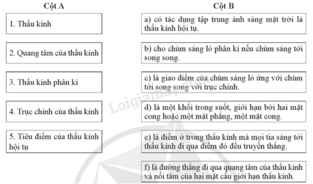 5. Chùm ánh sáng mặt trời chiếu song song với trục chính của thấu kính phân kì sẽ bị phân kì. Thấu kính phân kì không làm tập trung được năng lượng ánh sáng mặt trời.