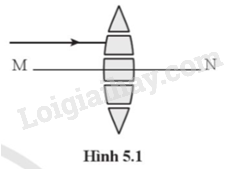 Thấu kính hội tụ được coi như ghép từ nhiều lăng kính có đáy hướng về phía trục chính MN của thấu kính như hình 5.1.