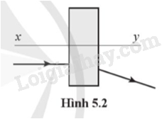 Ở hình 5.2, xy là trục đối xứng của thiết bị khúc xạ ánh sáng (lăng kính hoặc thấu kính) được đặt trong hộp kín. Hộp có hai khe hẹp để ánh sáng vào và ra khỏi hộp. Dùng đèn laser chiếu vào một khe hẹp trên hộp kín thì thấy tia ló ra ở khe đối diện như hình 5.2.