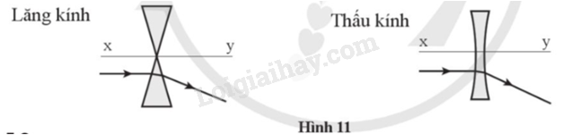 Thiết bị trong hộp có tác dụng làm tia ló lệch ra xa trục đối xứng xy nên có thể là lăng kính hoặc thấu kính được mô tả như hình 11.