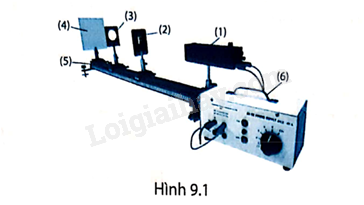 Hình 9.1 mô tả bộ dụng cụ thí nghiệm đo tiêu cự của thấu kính hội tụ.