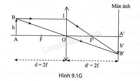 a) Từ Hình 9.1G, ta có: BI = AO = 2f = 2OF’, do vậy OF’ là đường trung bình của ∆B'BI.