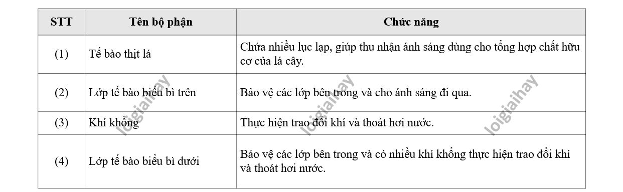 3 – b: Khí khổng có chức năng trao đổi khí và thoát hơi nước.
