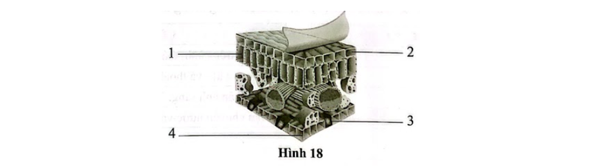 Ghi tên các bộ phận tương ứng với các chú thích từ 1 đến 4 trong hình 18 và nêu chức năng của mỗi bộ phận đó.