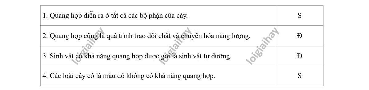 Hãy điền Đ (đúng) hoặc S (sai) vào ô trống với mỗi ý dưới đây.