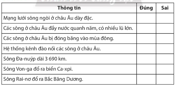 Xác định ý Đúng hoặc Sai cho các thông tin dưới đây bằng cách đánh dấu (x) vào ô tương ứng.