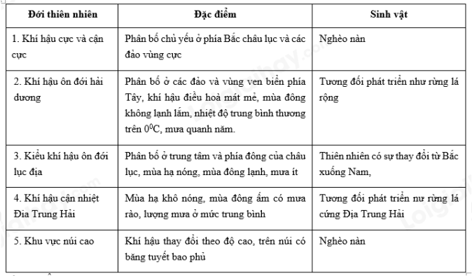 Em hãy liên hệ kiến thức về đặc điểm các đới thiên nhiên của châu Âu.