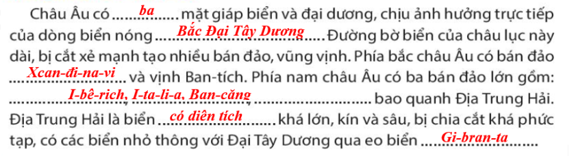 1. Đại Tây Dương 2. Bắc Băng Dương 3. Địa Trung Hải