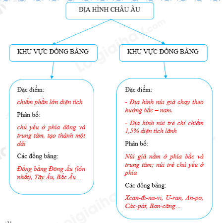 Em hãy liên hệ kiến thức về đặc điểm địa hình của châu Âu.