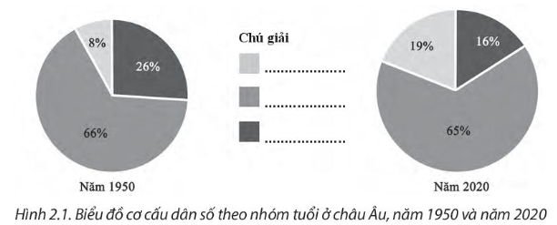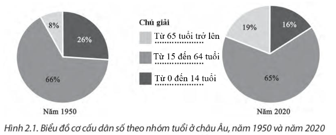 Em hãy dựa vào bảng Cơ cấu dân số theo nhóm tuổi ở châu Âu, giai đoạn 1950 – 2020 ở bài 2 trong SGK và hình 2.1