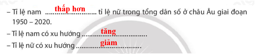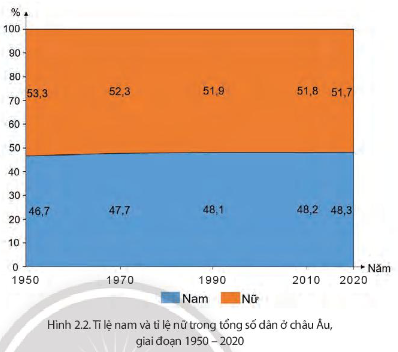 Câu 5 sai, sửa lại: Tỉ lệ nam thấp hơn tỉ lệ nữ trong tổng số dân ở châu Âu và có sự thay đổi trong giai đoạn 1950 – 2020.