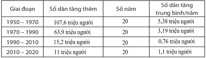 + Số dân thành thị tăng từ 284 085 nghìn người năm 1950 lên 556 684 nghìn người năm 2020: tăng 272 599 nghìn người, gấp 2 lần.