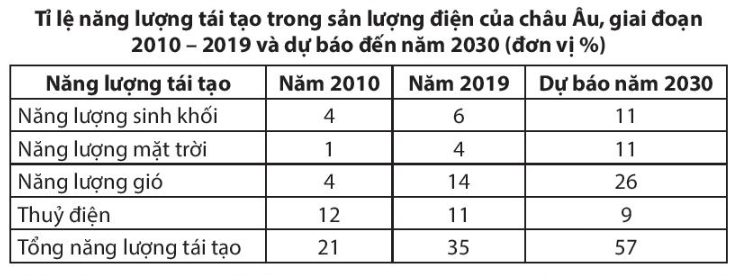 - Hãy nhận xét sự thay đổi tỉ lệ năng lượng tái tạo trong giai đoạn 2010 - 2019 và dự báo đến năm 2030.