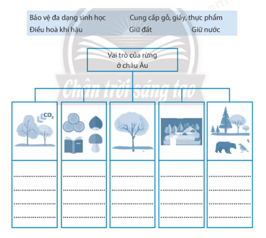 Hãy lựa chọn những cụm từ thích hợp trong hộp bên dưới, sau đó ghi số 1, 2, 3, 4 tương ứng vào ô tròn trống ở trên hình để thể hiện các nguồn gây ô nhiễm môi trường không khí ở châu Âu. Kể tên 5 loài động, thực vật bị sụt giảm về số lượng, có nguy cơ bị tuyệt chủng ở châu Âu. Lựa chọn một trong 5 loài động, thực vật kể trên để viết một đoạn thông tin (khoảng 100 từ), mô tả về đặc điểm, trình bày về thực trạng hiện nay và nêu nguyên nhân dẫn đến thực trạng này của loài đó.