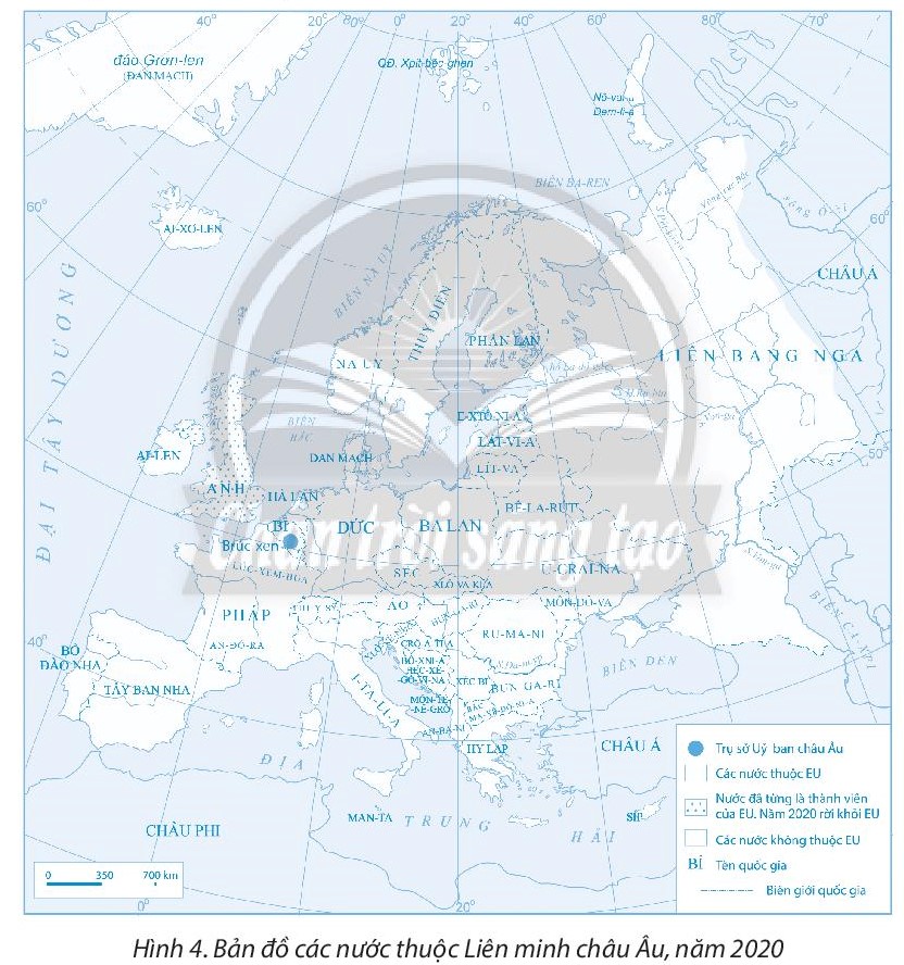 Dựa vào hình 4 trong SGK, hãy: Tô màu cam vào các nước sáng lập Liên minh châu u gồm: Đức, Pháp, I-ta-li-a, Hà Lan, Bỉ, Lúc-xem-bua trong bản đồ dưới đây. Tô màu vàng vào các nước còn lại của Liên minh châu u, tính đến năm 2020 trong bản đồ dưới đây. Dựa vào bảng số liệu GDP của một số nền kinh tế lớn nhất thế giới, năm 2020 ở bài 4 trong SGK, hãy vẽ biểu đồ và rút ra nhận xét. Tiền thân của Liên minh châu Âu là. Năm 2020, nước nào rời khỏi Liên minh châu Âu? Năm 2020, đồng tiền chung châu u