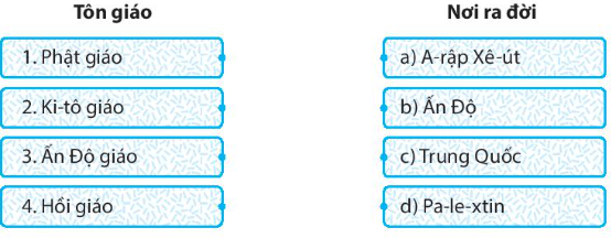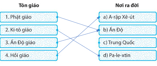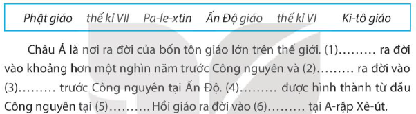 (1) Ấn Độ giáo; (2) Phật giáo; (3) thế kỉ VI, (4) Ki-tô giáo; (5) Pa-le-xtin; (6) thế kỉ VII