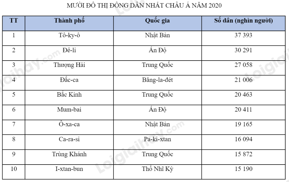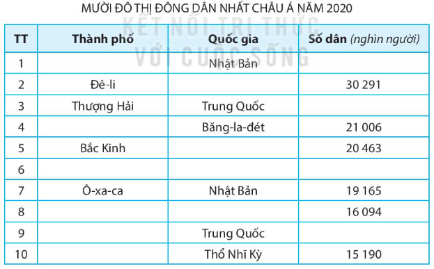 Em hãy dựa vào Bảng 2. Số dân của một số đô thị lớn ở châu Á, năm 2020 Tr. 117 – SGK.