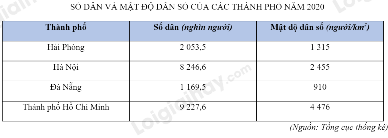 Tìm hiểu và cho biết số dân và mật độ dân số của các thành phố: Thành phố Hồ Chí Minh, Hà Nội, Hải Phòng, Đà Nẵng.