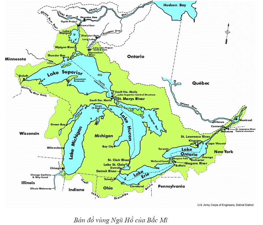 - Hệ thống Ngũ Hồ gồm 5 hồ lớn, là: hồ Thượng, hồ Mi-si-gân, hồ Hu-rôn; hồ Ê-ri-ê và hồ Ôn-ta-ri-cô