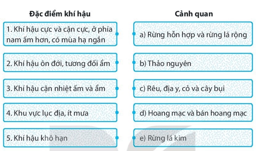 Trả lời câu 5 trang 45 Bài 14 SBT Địa lí 7 Kết nối tri thức