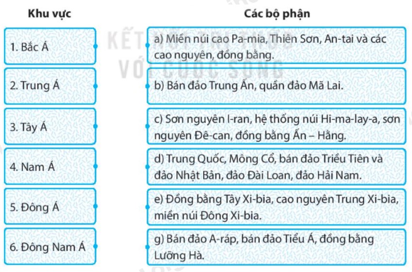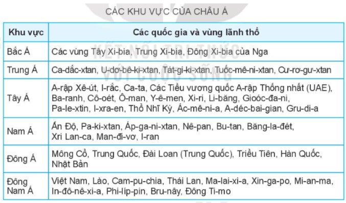 Em hãy liên hệ kiến thức về vị trí các khu vực của châu Á.