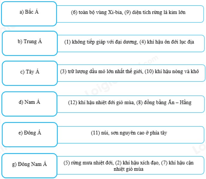14. Cho biết đặc điểm địa hình, khí hậu của các khu vực ở châu Á bằng cách hoàn thành bảng theo mẫu sau.