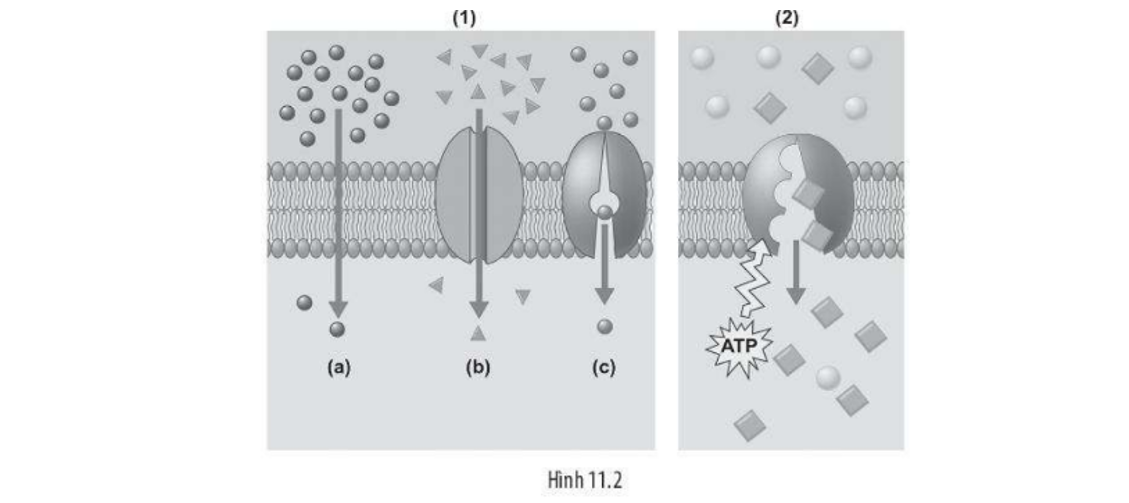 1) Phương thức vận chuyển (b) và (c) là vận chuyển cần chất mang