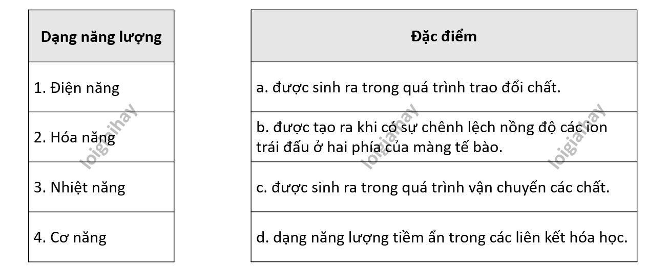 Hãy ghép các dạng năng lượng tương ứng với đặc điểm của chúng.