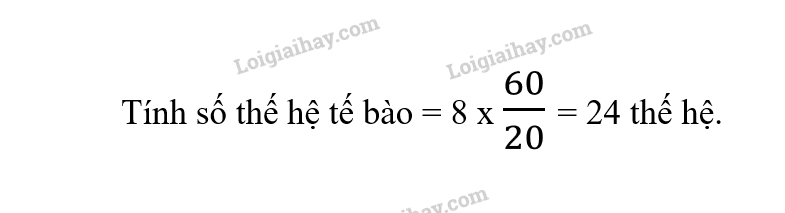 Một loại vi khuẩn có thời gian thế hệ là 20 phút. Tính số thế hệ tế bào khi chúng được nuôi cấy trong 8 giờ ở môi trường đầy đủ chất dinh dưỡng.