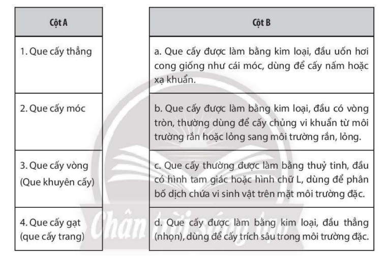 A. Nhận diện được các loại que cấy trong nghiên cứu vi sinh vật.
