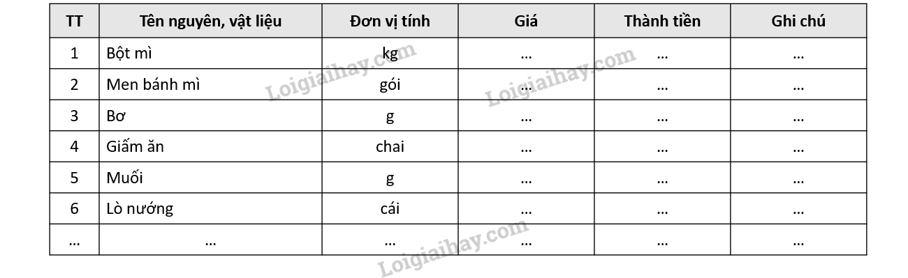 Khi làm bánh mì, chúng ta cần những nguyên liệu nào sau đây?