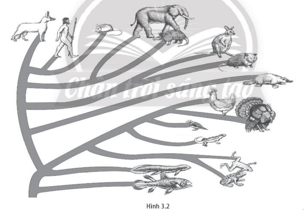 a) Tên hình: Sơ đồ sự tiến hoá của động vật có xương sống. Hình 3.2 mô tả quá trình tiến hoá của động vật.