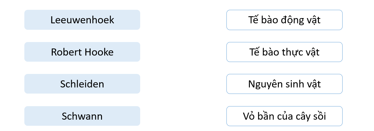 Ghép tên các nhà khoa học cho đúng với đối tượng mà họ đã quan sát được khi nghiên cứu về tế bào.